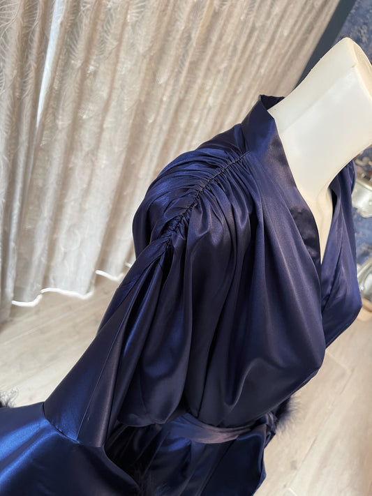 Midnight Blue Navy Hollywood Vintage Style Feather Robe