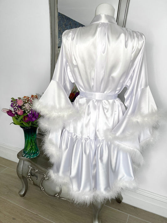 Short White Bridal Vintange Hollywood Inspired Feather Robe